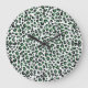Elegant Green Glitter Black Leopard Animal Print Large Clock