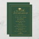 Send your 25th class reunion classmates our elegant flat card invitation featuring a green background and faux gold script typography accented with a gold graduation cap. Personalise with all your reunion details. Designed by ©Susan Coffey.