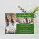 Stylish green, gold and white graduation party invitation featuring 4 photos and elegant gold calligraphy script typography accented with gold confetti. ASSISTANCE: For help with design modification/personalisation, transferring the design to another product or you'd like coordinating items, contact the designer BEFORE ORDERING via Zazzle Chat or makeitaboutyoustore@gmail.com.