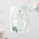 Celebrate your child’s sacred day with this elegant baptism invitation featuring a watercolor green background, gold geometric frame, and delicate cross with florals. Perfect for boy or girl baptisms, christenings, or holy ceremonies. Fully customisable with name, date, church, and reception details.