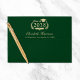 Elegant green and gold graduation return address envelope. The back flap features "Class of" and the year in a laurel wreath with a grad cap and diploma and the graduate's name in a formal script and address in classic modern typography.