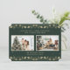 Elegant green and gold photo holiday card featuring gold holly and little stars. Easily personalise this modern holiday card with your favourite photos and the family name.