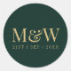Elegant Green Gold Monogram Wedding Classic Round Sticker