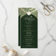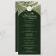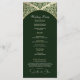 This wedding program features a rich green background adorned with ornate golden damask flourishes, creating a luxurious and timeless style. A decorative crest sits at the top, while the central layout highlights the couple’s names and all wedding service details in a refined and organised format. The elegant pairing of green and gold brings a sophisticated and regal look, making this program card a perfect choice for formal, traditional, and evening weddings.