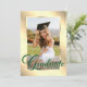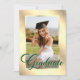 Elegant green and gold photo graduation party invitation featuring a photo and a modern script font.