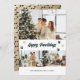 Modern green and gold photo Happy Pawlidays card featuring three photos and paw prints on the front and a green background with gilded paws at the back. Easily personalise this elegant photo holiday card with your photos, family name and the year.