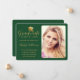 Elegant Green Gold Script Photo College Graduation Announcement