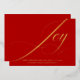 Share the spirit of the season with this elegant Joy Christmas card featuring a gold foil script design on a vibrant red background. The flowing typography and minimalist layout bring timeless sophistication to your holiday greetings.