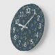 Elegant Green Leaves Pink Floral Ditsy Pattern | Large Clock