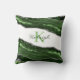 Elegant Green Marble Silver Glitter Monogram Cushion