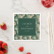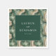 This elegant wedding napkin design features a sophisticated marbled pattern in shades of green, cream, and gold, creating a luxurious feel. The central dark green rectangle provides a striking backdrop for the clean, serif typography that highlights the names and date, adding a classic touch to the overall composition. The harmonious colour palette and swirling textures evoke a sense of timeless refinement, making it perfect for formal celebrations. Ideal for weddings or significant events, this design blends traditional elegance with modern simplicity, ensuring a memorable presentation.