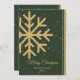 Elegant Green Merry Christmas Snowflake Flat Holiday Card