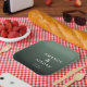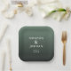 This elegant wedding plate features a sophisticated gradient background transitioning from soft mint to deep forest green, creating a calming and natural aesthetic. The design showcases clean, modern typography with centered names and details in a minimalist sans-serif font, emphasizing clarity and simplicity. Perfect for formal occasions, the understated elegance of this plate makes it an ideal choice for weddings or upscale events, capturing a mood of refined sophistication without any additional motifs or embellishments.
