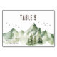 This table number card is elegant and very useful helping guests know where to sit. Design of watercolor landscape painting of trees, flying birds and mountains in the background. Calm and serene nature illustration with pine trees and silhuettes of flying birds. Add names of bride and groom and the wedding date.