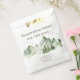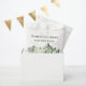 Design of watercolor landscape painting of trees, flying birds and montains in the background. Calm and serene nature illustration with pine trees and silhuettes of flying birds. Add names of bride and groom and the wedding date. Text: "Something sweet for the road" can easily be changed to a "thank you" message.