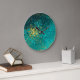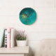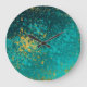 A gorgeous, elegant clock with a deep teal green opal effect background pattern with faux gold overlaid.