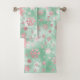 Elegant Green Pink Christmas Snowflake Pattern Bath Towel Set
