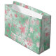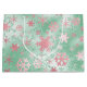 Elegant Green & Pink Christmas Snowflake Pattern Large Gift Bag