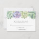 Botanical wedding RSVP card with a top border consisting of green and purple watercolor succulents and the words, "Kindly Reply". The backside is a green watercolor wash. The responses in the design are "Joyfully Accepts" and "Regretfully Declines" , but you may use the template to change the responses to whatever wording you desire to make them more personal to your style. These RSVP cards allow a "yes" or "no" answer and are great for a buffet style reception. These RSVP cards are perfect for desert wedding in the spring or summer.