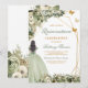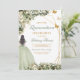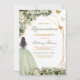 Celebrate a special milestone with this elegant Quinceañera invitation featuring a floral border, gold geometric accents, and butterflies for a timeless design. The card showcases a graceful girl in a green ball gown, adding a personal and festive touch. Perfect for formal gatherings, this customizable invitation highlights the beauty and tradition of a Quinceañera celebration while making your event unforgettable.