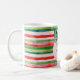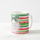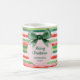 Fun green and red stripes with ribbon coffee mug. A perfect personalised gift for the Christmas holiday season.