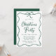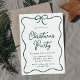 Elegant Green Ribbon Bow Christmas Party Invitation