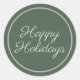 Elegant green "Happy Holidays" classic round sticker with calligraphy script text. Contact us for help with customisation or to request matching products.