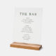 This elegant wedding menu features a minimalist design with clean lines and ample white space, creating a sophisticated and modern look. The color palette includes deep green headings and black text on a crisp white background, enhancing readability and adding a touch of luxury. The typography is classic and refined, using serif fonts to convey an air of timeless elegance. Perfect for upscale events, this menu offers a clear and organized presentation of beer, wine, and spirits options, making it ideal for couples seeking a chic and understated aesthetic for their special day.