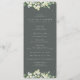 A dark grey green wedding program/order of ceremony, complete with a listing for a large wedding party. Featuring an edging of hand painted snowberries and eucalyptus on the front and a stem on the back. All text is fully editable. Please view this Collection in my store for programs with alternative wording/layouts and in different sizes/colours/shapes. Coordinating items also available.