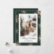 Modern green photo Christmas card with a script font and featuring a green snowy photo frame with snowflakes. Easily personalise this green photo Christmas card with your photo and family name.