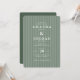 This elegant wedding invitation features a vertically orientated layout with a classic and minimalist design. The background showcases subtle vertical stripes in varying shades of muted green, creating a sophisticated backdrop for the clean, serif typography that dominates the composition. The text is centrally aligned, emphasizing clarity and balance, while the colour palette of greens and whites conveys a timeless and formal aesthetic. Perfect for couples seeking an understated yet refined look, this invitation sets the tone for a traditional and memorable celebration.