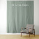 This elegant wedding backdrop features a minimalist design with vertical stripes in muted green shades, creating a calming and sophisticated atmosphere. The layout is centred around clean text elements, including customisable date placeholders and the fixed phrase "MR. & MRS." rendered in an elegant serif typeface. The digital print technique ensures crispness and clarity, enhancing the modern aesthetic. Perfect for formal occasions, this backdrop combines simplicity with timeless style, making it ideal for capturing memorable moments on your special day.