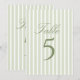 Elegant green Stripes Wedding Table Number