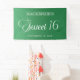 Elegant green Sweet 16 birthday party banner for girls. Personalised with the name of the guest of honour and her party date.