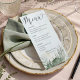 Elevate your reception tables with this elegant tropical wedding menu card, featuring hand-painted watercolor monstera leaves, palm fronds, and lush botanical greenery. The vibrant island-inspired artwork creates a fresh, exotic atmosphere perfect for destination weddings, beach celebrations, or tropical garden receptions. Designed with a clean, modern layout, this menu card is fully customizable—allowing you to add your courses, signature drinks, and special notes with ease. A stunning finishing touch that complements your cohesive tropical wedding décor.