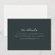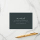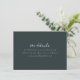 This elegant wedding enclosure card features a sophisticated dark green background with crisp, centered white text. The design utilizes a clean serif font that exudes formality and simplicity, making it perfect for conveying essential information. With ample negative space, the layout is minimalist and modern, ensuring clarity and readability. Ideal for directing guests to further details online, this card combines professionalism with an inviting tone, setting the stage for a seamless event experience.