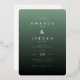 This elegant wedding invitation features a minimalist design with a gradient green background that transitions from soft mint to deep forest, creating a sophisticated and inviting atmosphere. The layout is vertically oriented with rounded corners, emphasizing clean lines and smooth gradients for a modern look. Typography takes center stage, using serif fonts in varying sizes to guide the eye through the details, while maintaining an overall formal tone. Perfect for couples seeking a chic and understated aesthetic, this invitation sets the mood for a memorable celebration.