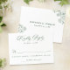 Enhance your wedding stationery with the Elegant Green Victorian Floral RSVP Card. The front displays “Kindly Reply” in flowing calligraphy, along with your response by date and guest reply wording. On the back, Victorian floral bouquets at the corners frame the couple’s names and wedding date, bringing a refined botanical elegance that pairs beautifully with garden and estate wedding suites.