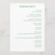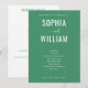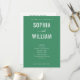 This wedding program features a simple, elegant design with a deep green background and crisp white text. The layout is centered and balanced, showcasing the names in bold serif font with a cursive "and" for added elegance. The ceremony details are listed in a clean sans-serif typeface, ensuring clarity and readability. The minimalist aesthetic focuses on typography, conveying a formal yet inviting mood perfect for a sophisticated celebration.