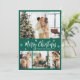 Elegant Green White 4 Photo Collage Christmas Holiday Card