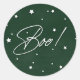 Elegant Green+White Scattered Stars Boo! Halloween Classic Round Sticker