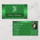 Elegant Green with Photo and Chic Monogram Pattern Business Card