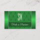 Make a lasting impression with this elegant business card design featuring shimmery green gradient borders and monogram pattern on a green background.
