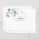 Bridal shower activity card features watercolor eucalyptus and greenery. Advice" card prompts guests to share advice for the bride to be.