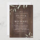 Modern watercolor botanical greenery leaves on dark barn wood grain background, simple and elegant, great wedding invitations for rustic botanical garden wedding in fall and winter.