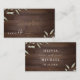 Modern watercolor botanical greenery leaves on dark barn wood grain background, simple and elegant, great wedding place cards for rustic botanical garden wedding in fall and winter.