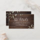Modern watercolor botanical greenery leaves on dark barn wood grain background, with modern script and couple names on the back, simple and elegant, great wedding details insert cards for rustic botanical garden wedding in fall and winter.