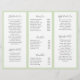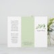 Elegant trifold brochure featuring a simple design with a rustic watercolor painted greenery sprig along with your business name on the front panel. The back panel has your contact information over a matching shade of green and the inner fold panel has two headers and text boxes. The inside has multiple templates for information about your business on the outer panels and a price list in the middle panel over white surrounded by a green border. This botanical design is great for a beauty salon.