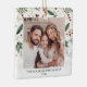 Celebrate the magic of the holidays with this elegant personalized family photo Christmas ornament, featuring a timeless greenery and berry border design. This keepsake adds a touch of nature-inspired charm to your Christmas tree. Customize with your family name and year for a one-of-a-kind decoration that will be cherished for years to come.