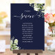 These elegant navy blue botanical greenery leaves wedding table numbers can be personalised with your guests' seating plan set in chic typography. The cards are printed on the front and back (double-sided). Designed by Thisisnotme©